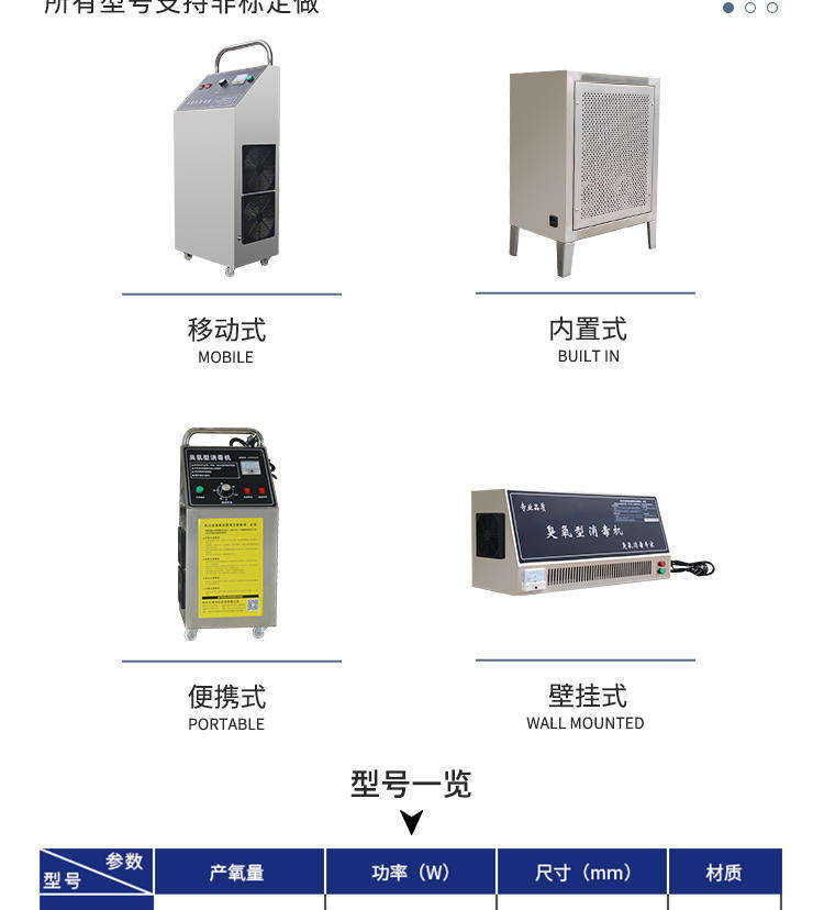 移動(dòng)式臭氧發(fā)生器采用循環(huán)空氣處理技術(shù),將室內(nèi)污染的空氣從底部抽到機(jī)器內(nèi)部,利用空氣中的氧氣電離產(chǎn)生臭氧氣體,將臭氧均與擴(kuò)散到車間內(nèi)部,利用臭氧破壞室內(nèi)空氣中微生物的組織,使其失去**能力,因而起到殺菌的目的。